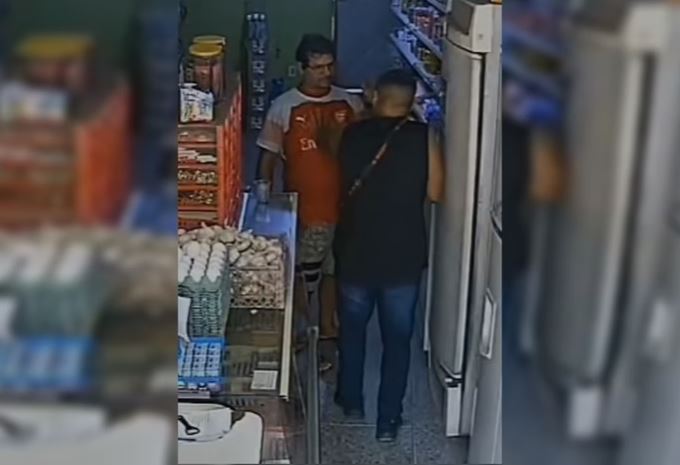 Armado, o bandido empurra o empresário para um canto da loja, enquanto ameaça a vítima com um revólver. Depois de ser agredido com socos e chutes, Eduardo é baleado.